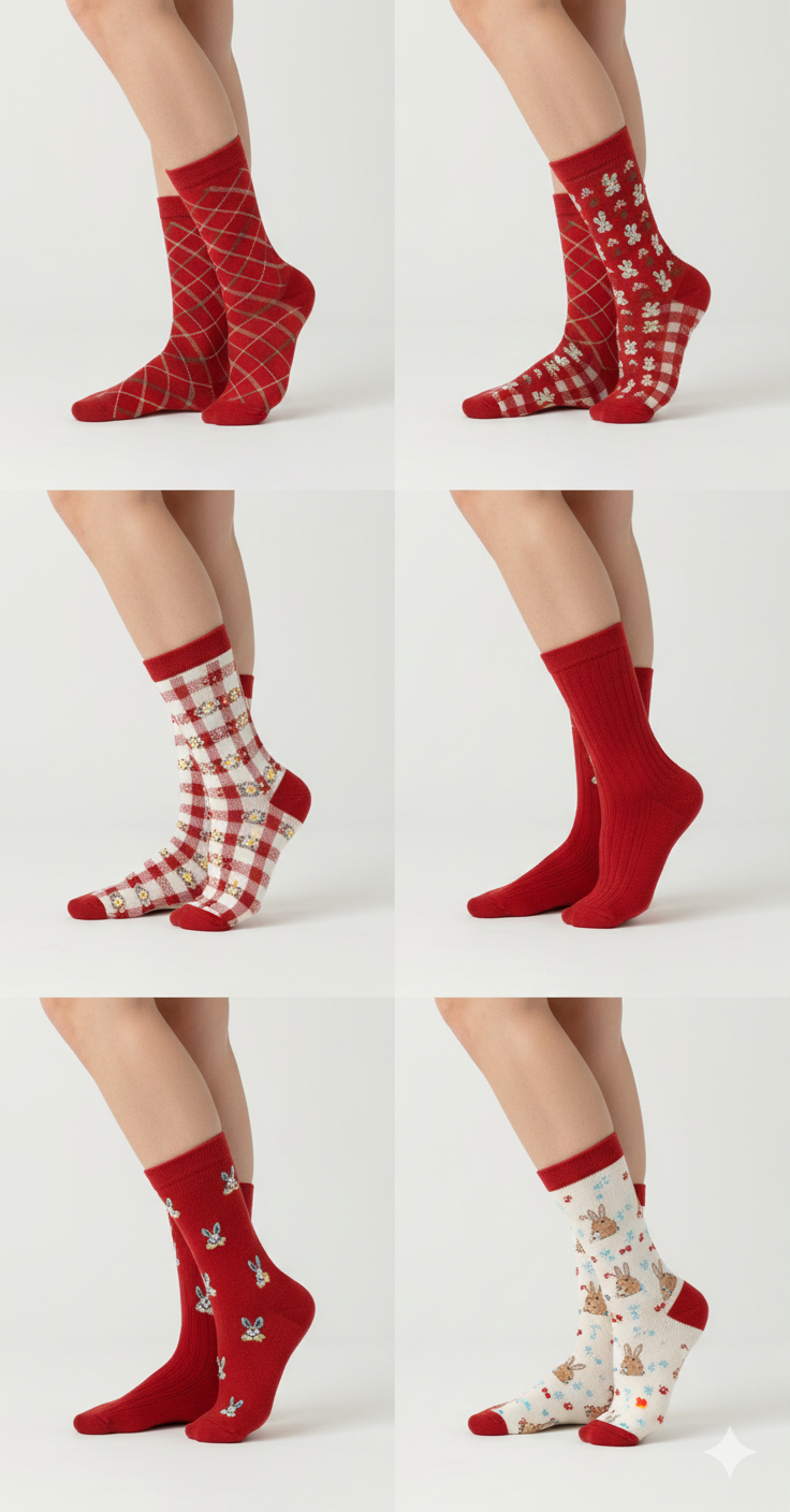 جوراب طرح آلبالو و خرگوش تم قرمز زنانه فری سایز
