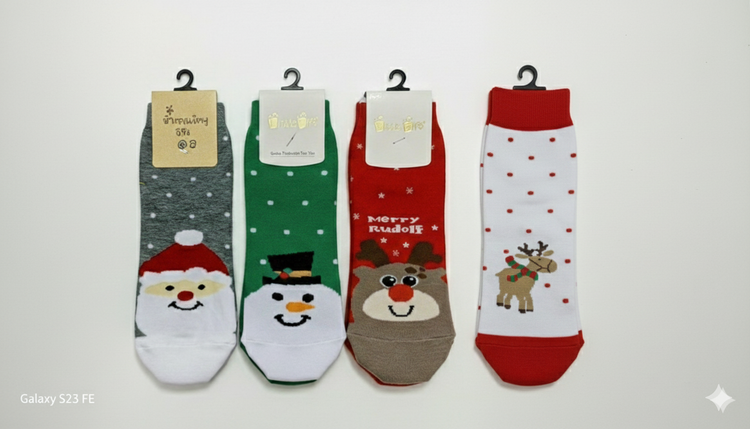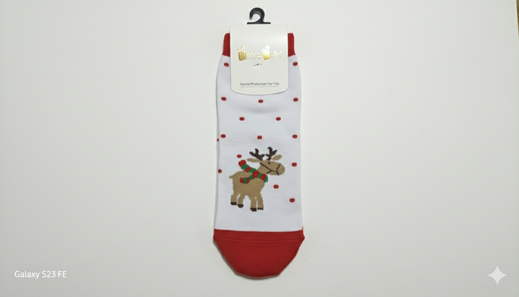 جوراب نخی کریسمسی طرح دار نیم ساق زنانه