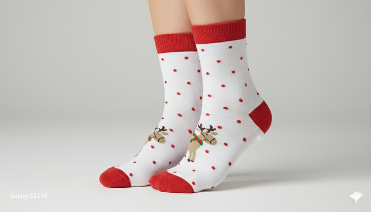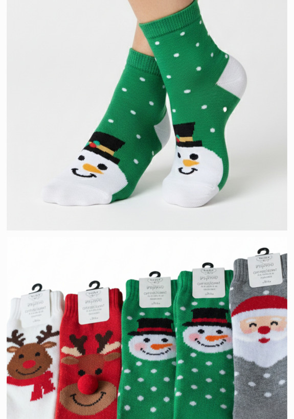 پک ۵ عددی جوراب پنبه‌ای طرح "زمستان شاد" (بابانوئل و گوزن)