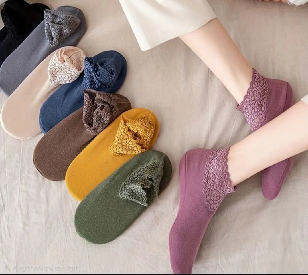 جوراب توری سفید وارداتی گل برجسته ی نیم ساق زنانه و دخترانه بدون باشنه فری سایز در چهار طرح